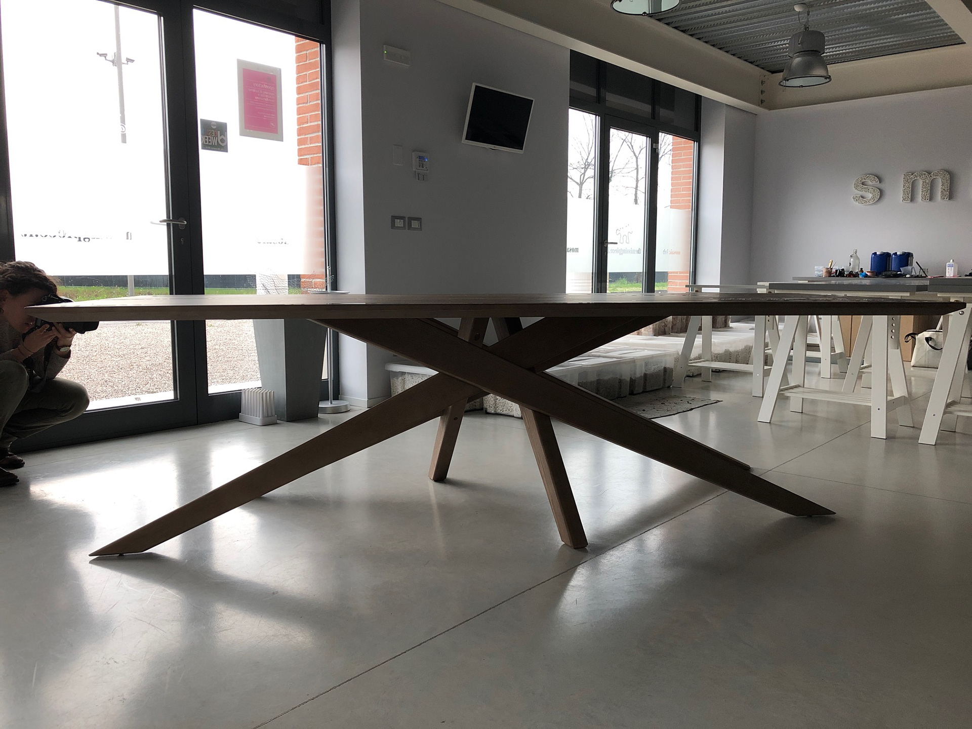 al suolo nella tempesta diventa così un meraviglioso schema di reticolato per ideare un tavolo, simbolo di riqualificazione del territorio e della sua ricchezza.