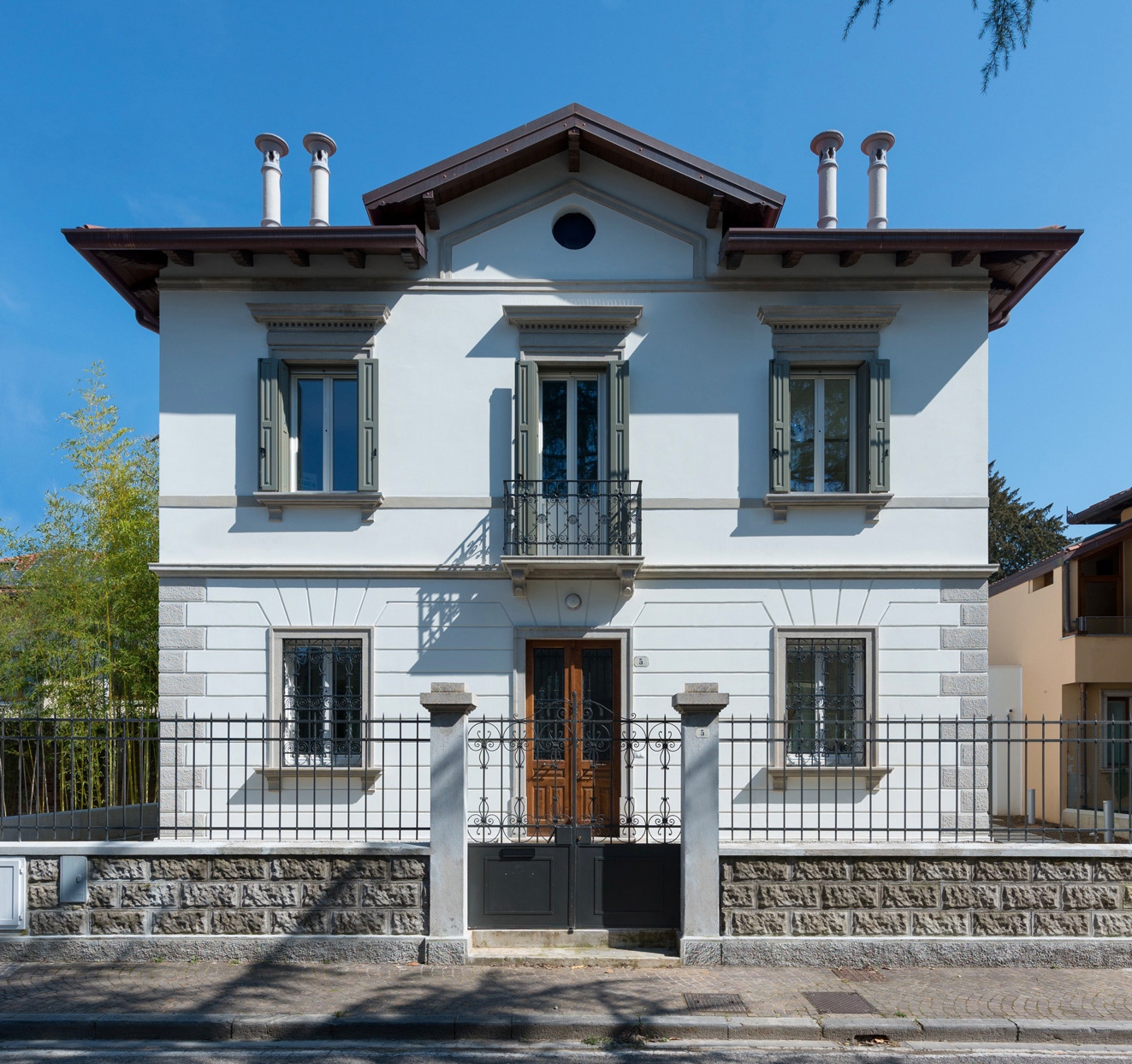 Si è proceduto con un attento lavoro di recupero dell’involucro esterno, restaurando gli intonaci originari, le cornici ed i marcapiani in cemento, le grate in ferro battuto e quanto altro possibile.
